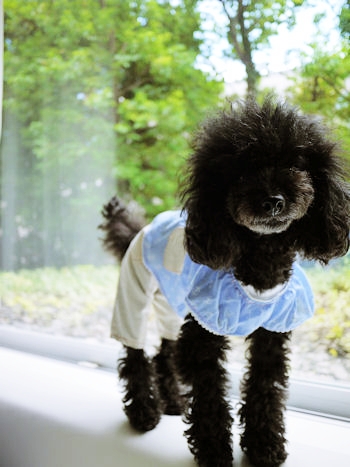 さくらちゃん試着 なのでパンツはさくらちゃんへパンツ丈がさくらちゃんのイメージじゃないからロールアップするか切るか?しなくちゃだわ〜ぱふは白もあったけどブルーにして良かった。夏らしく涼しげだし可愛いです♪